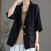 絶対流行 女っぽさが漂う 4色選べる 折り襟 綿麻 七分袖 森ガール スーツ ジャケット 大人カジュアル fashion ootd 夏コーデ ファッション coordinateコーディネート 夏服 カジュアルコーデ 今日のコーデ 大人コーデ レディースGF6173