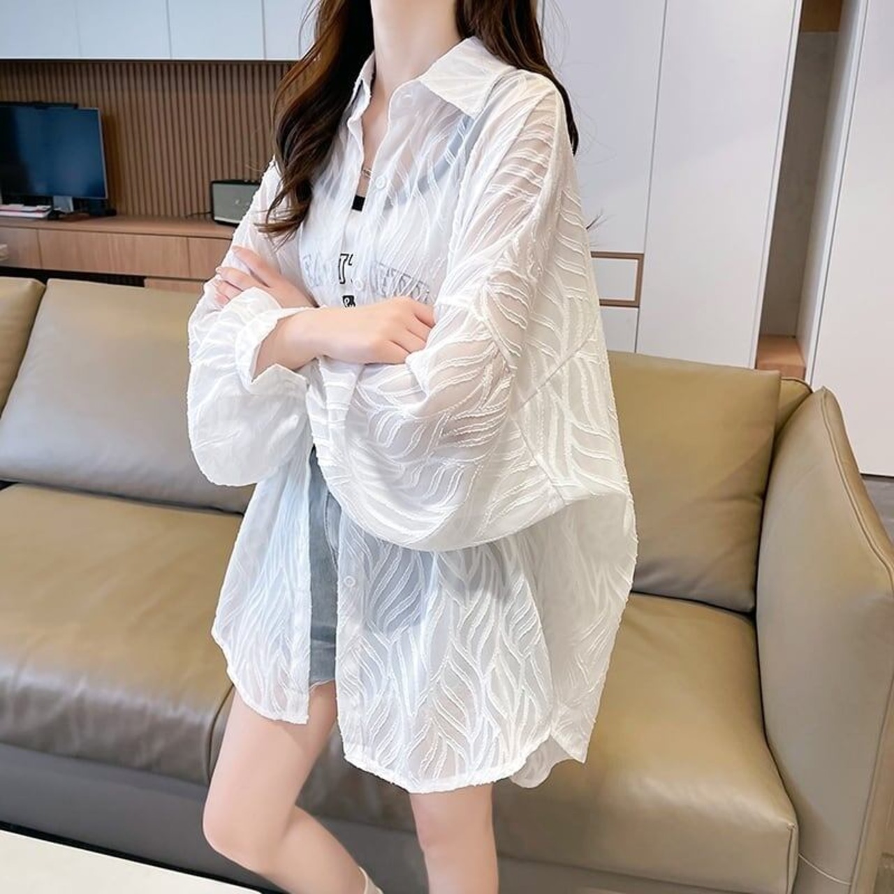 優しい雰囲気 薄手 透け感 着痩せ 紫外線対策 長袖シャツGF2348