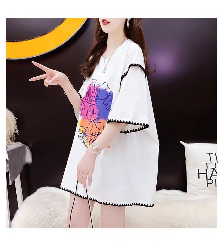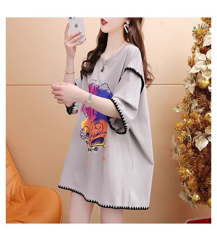 韓国系 Tシャツ ロング プリント 三色 ゆったり半袖 GF2355