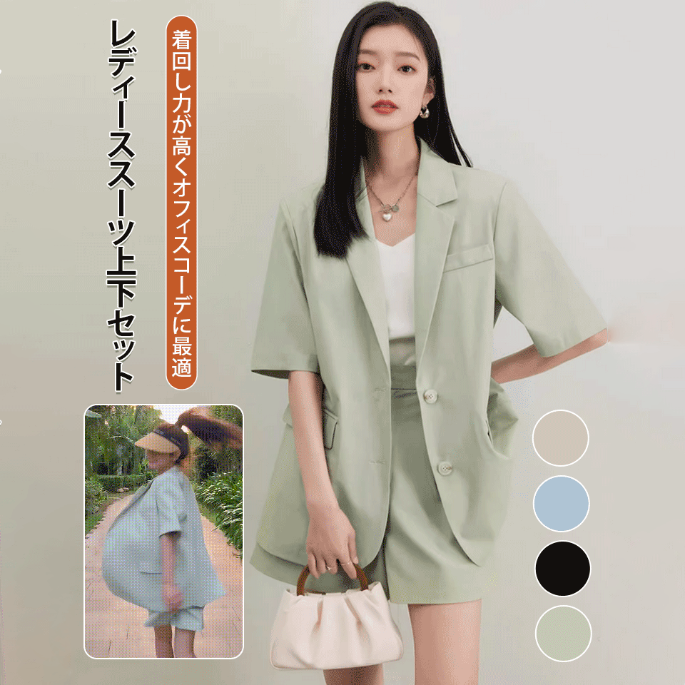 見逃し厳禁 折り襟 半袖 ジャケット ショートパンツ 無地 2点セット 大人カジュアル fashion ootd 夏コーデ ファッション coordinateコーディネート 夏服 カジュアルコーデ 今日のコーデ 大人コーデ レディースGF6217