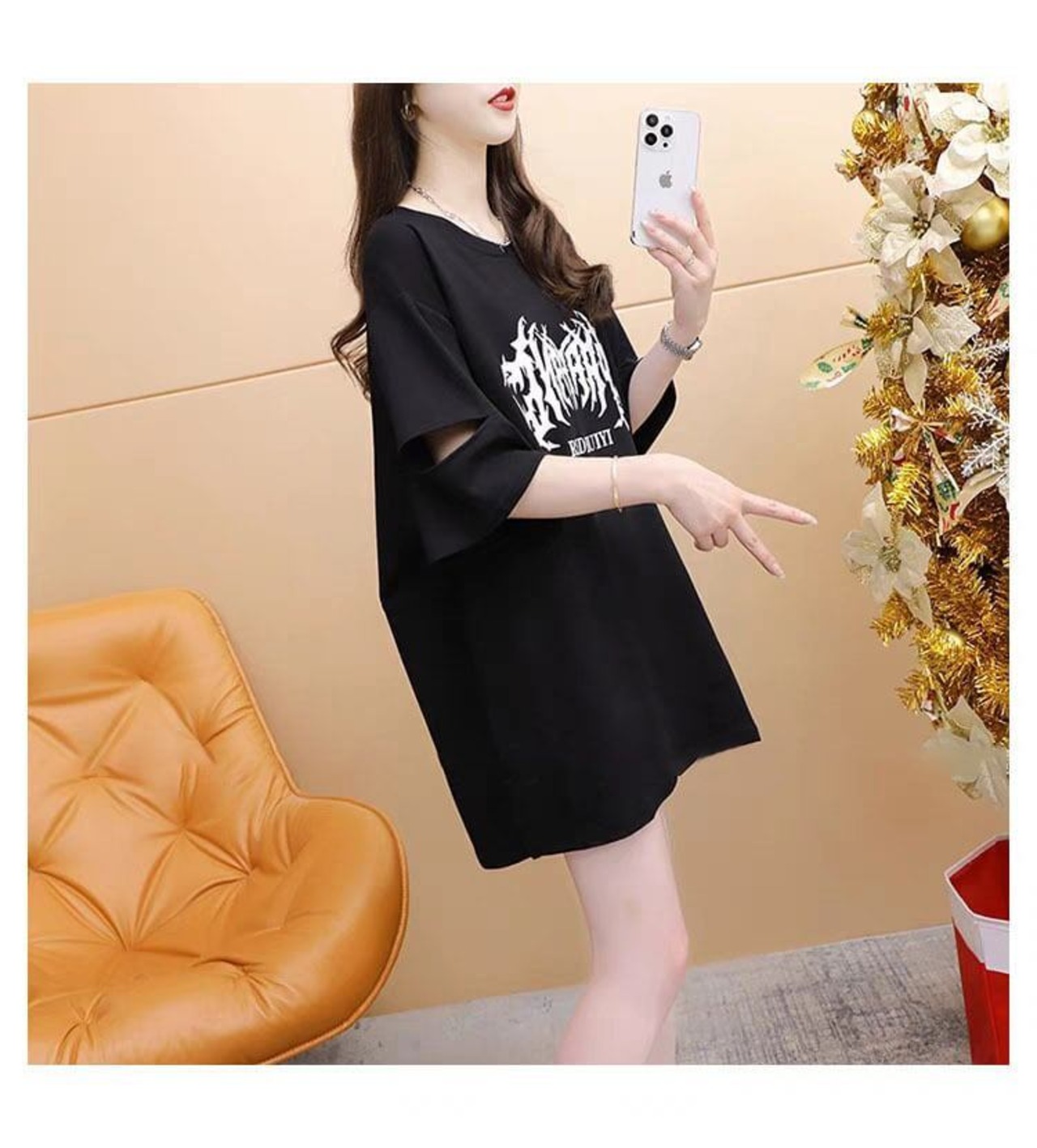 絶対欲しい ドロップショルダー ロング プリント Tシャツ ゆったり半袖 GF2392