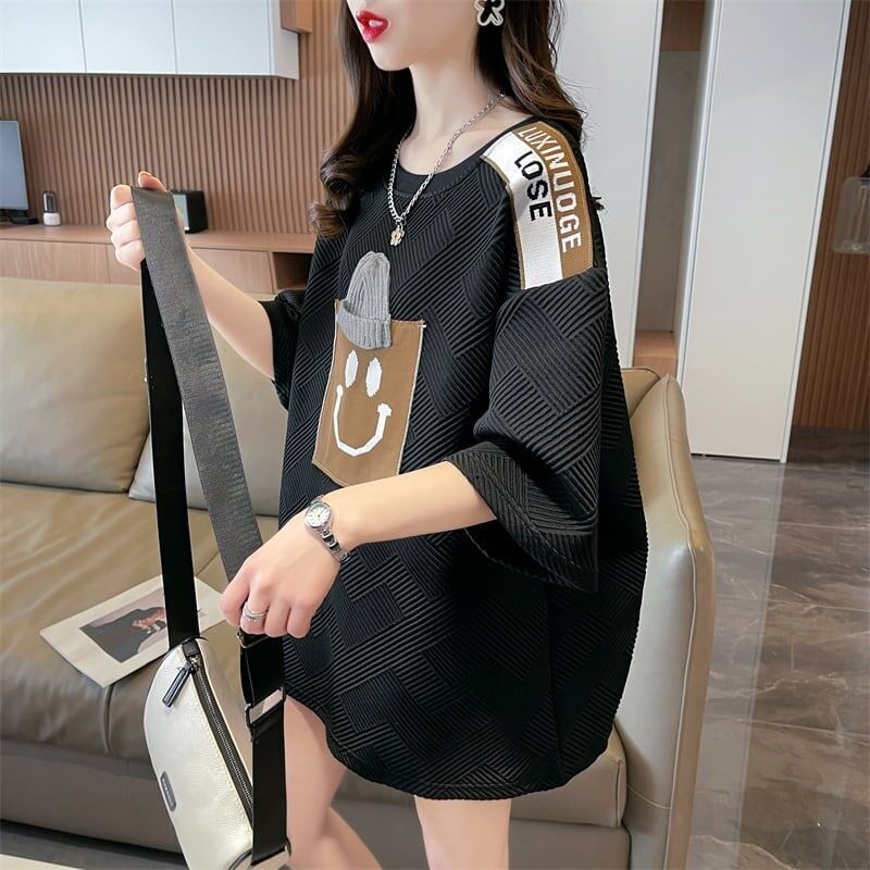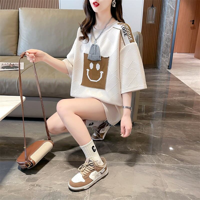 エレガント 立体ジャガードルーズウールパッチステッチ半袖TシャツGF2420