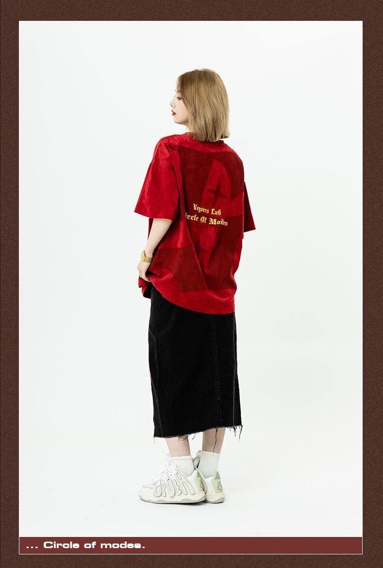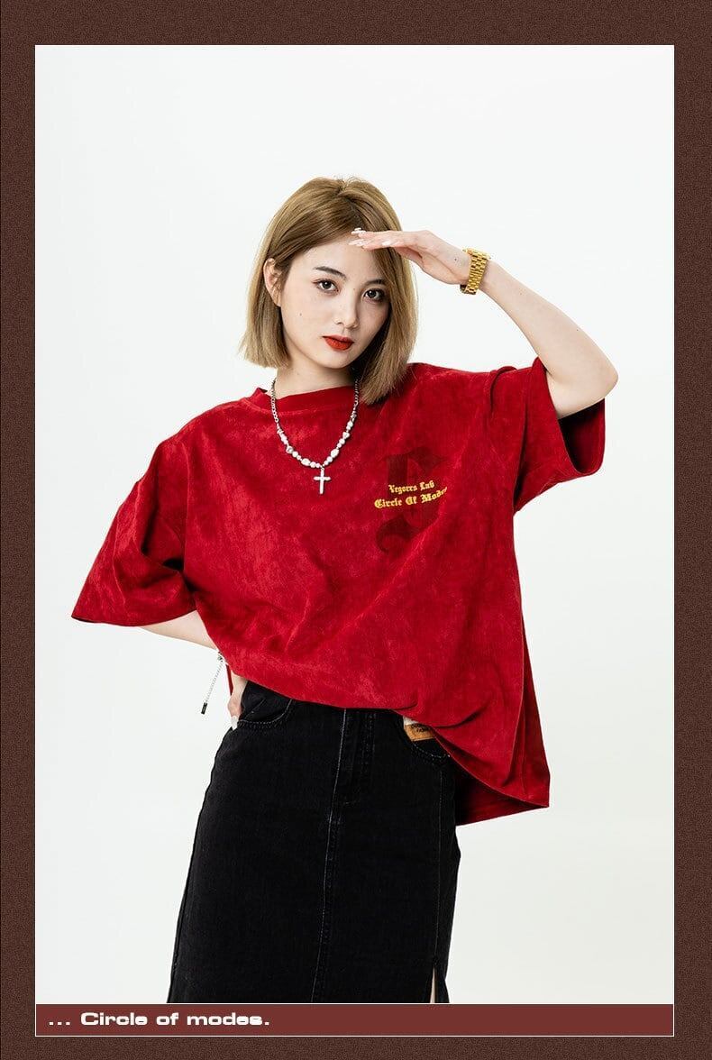 アメリカン ファントムレタープリントスエード レトロ 半袖 トレンディブランド 男女同スタイルGF2422