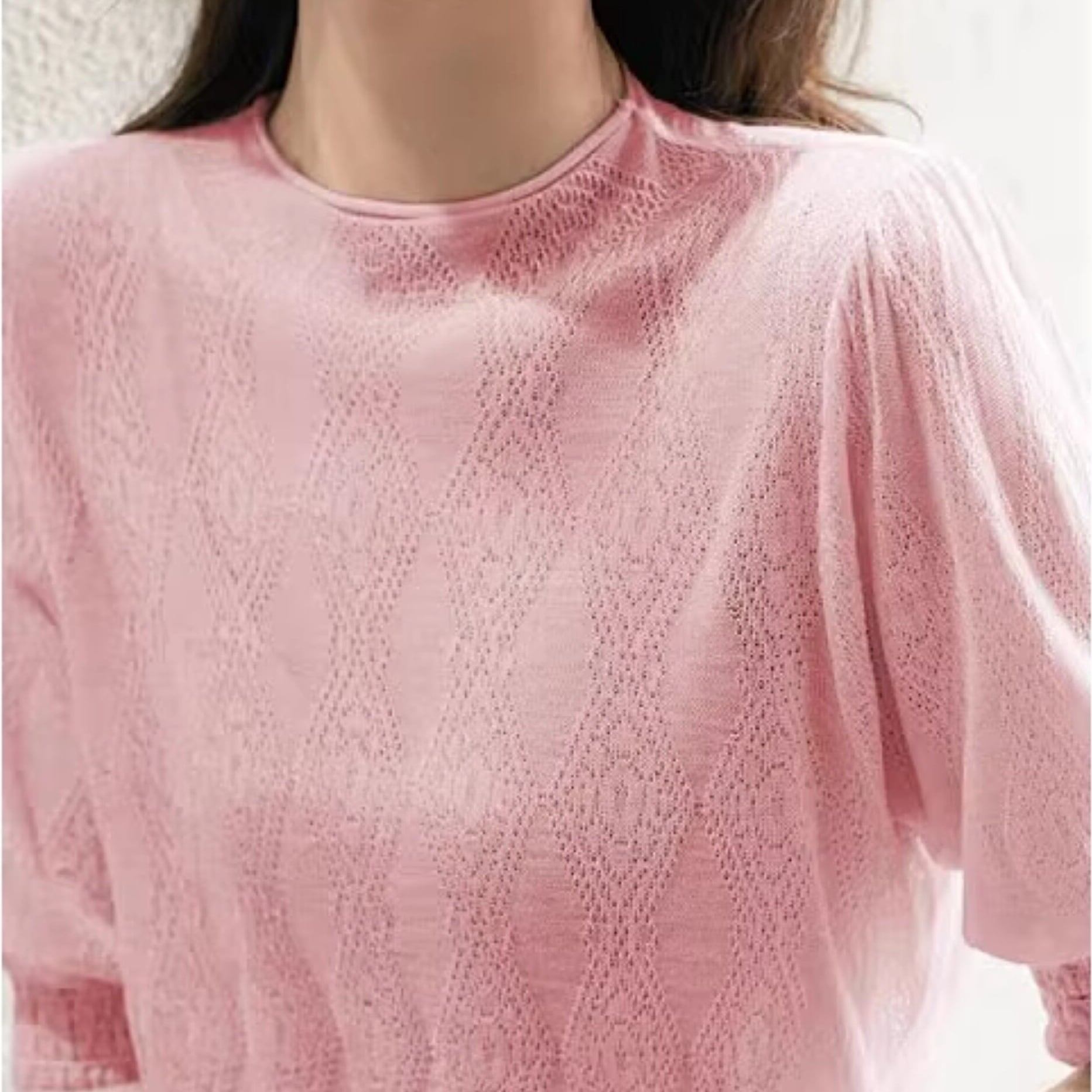 5カラー展開 着回し力抜群 中空 アイスシルク 夏 薄い 半袖 スリム シャツパ フスリーブ トップス フランス 大人カジュアル fashion ootd 夏コーデ ファッション coordinateコーディネート 夏服 カジュアルコーデ 今日のコーデ 大人コーデ レディースGF6298