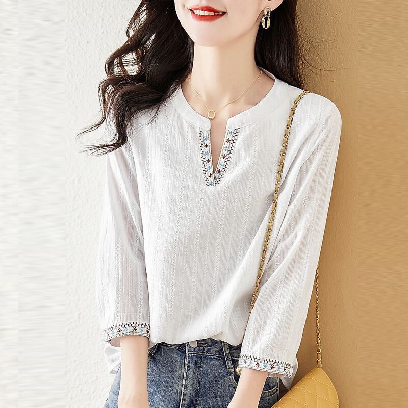 着回し力抜群 ファッション感満々 オフィス カジュアル 七分袖 ファッション Vネック シンプル フェミニン 無地 シャツ 大人カジュアル fashion ootd 夏コーデ ファッション coordinateコーディネート 夏服 カジュアルコーデ 今日のコーデ 大人コーデ レディースGF6303