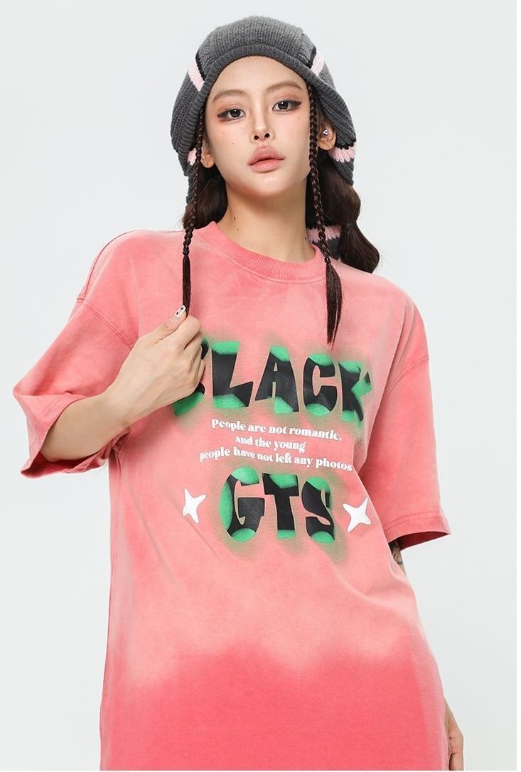 見逃し厳禁 ファッション ヴィンテージ加工 ストリート系 アルファベット プリントTシャツ GF2439