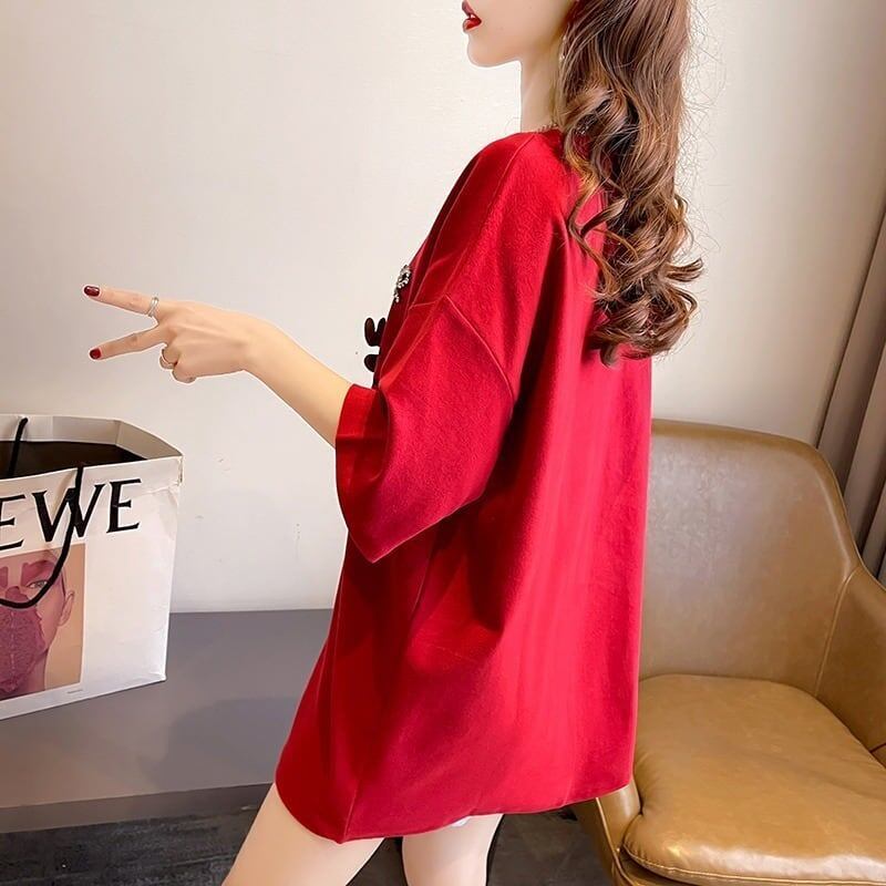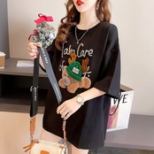 大活躍 ロング ビジューロゴ Tシャツ ゆったり 半袖 三色GF2441