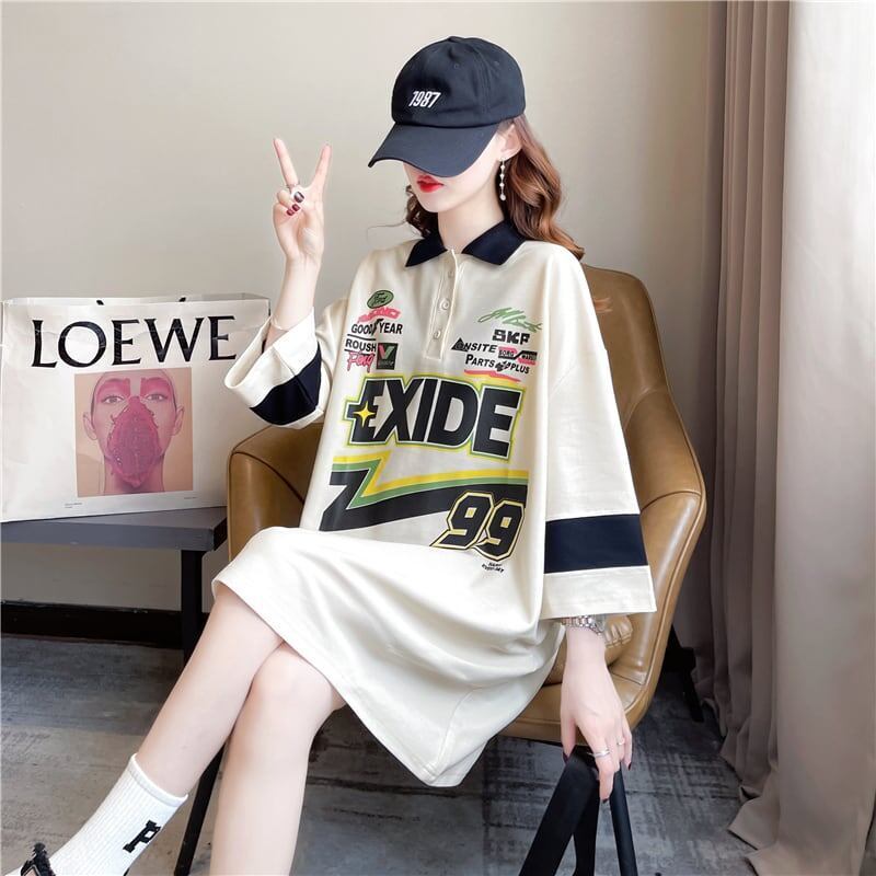質感のいい プリントTシャツ ロング POLOネック ゆったり半袖 GF2444