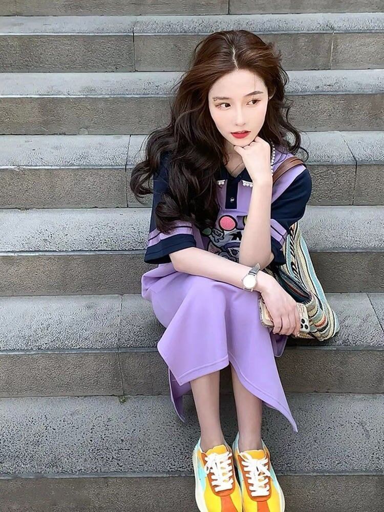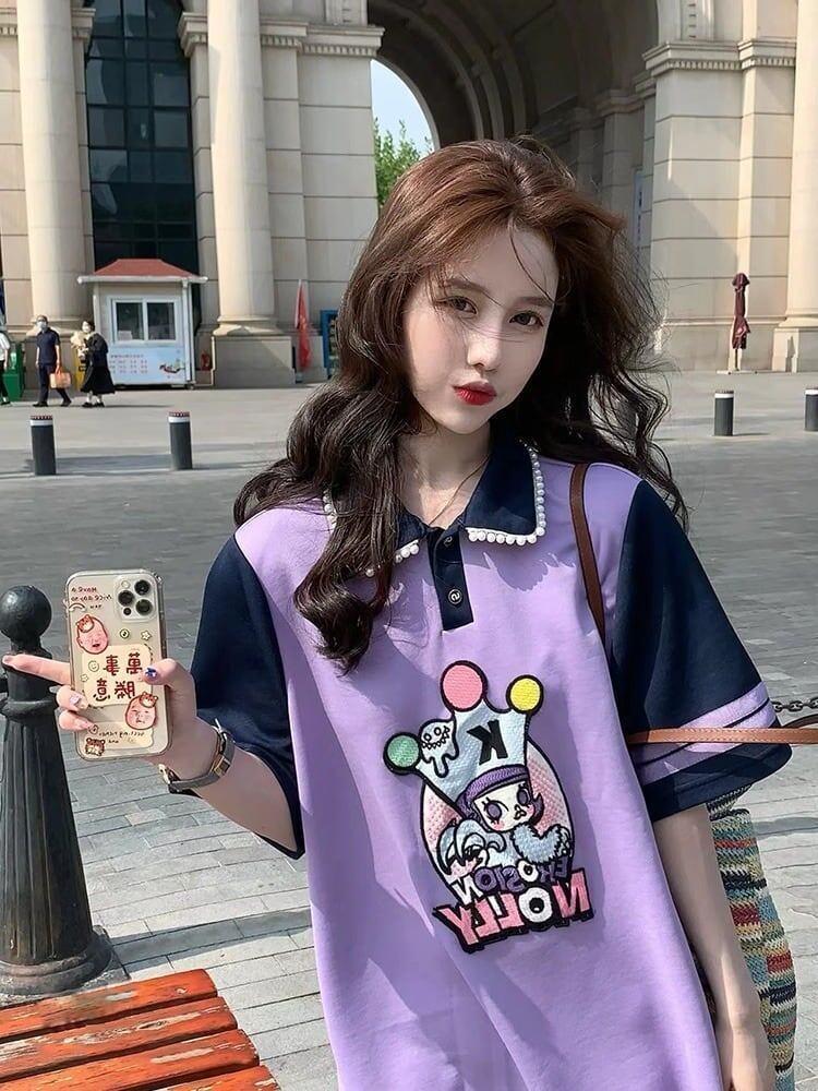 気質可愛い カラーコントラスト デザインセンス ポロカラー 半袖ドレスGF2452