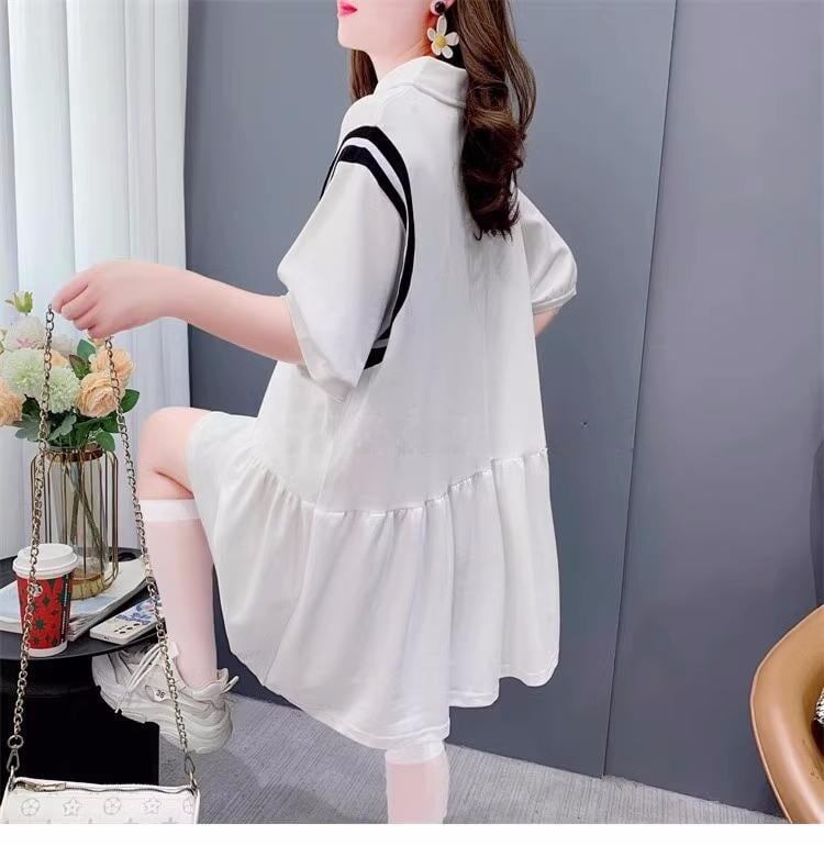 女子力アップ POLOネック 韓国系 ロング Tシャツ 二色 ゆったりワンピースGF2454