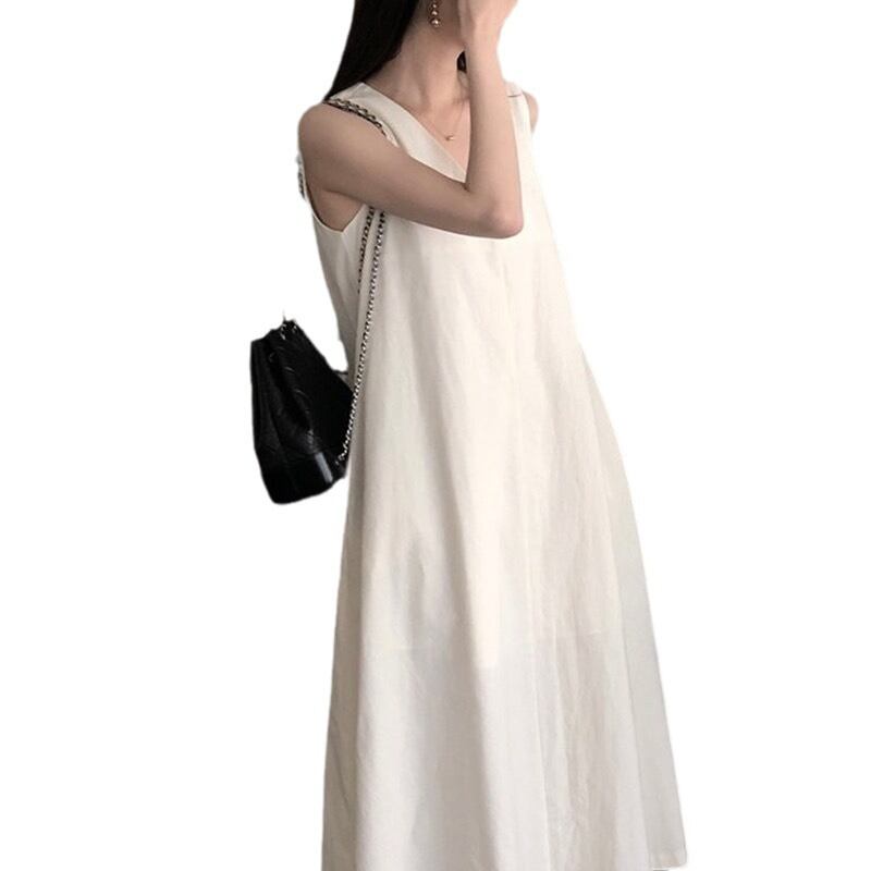 インナーとしてもおすすめ エレガント 体型カバー Vネック ノースリーブ カジュアル ワンピース 大人カジュアル fashion ootd 夏コーデ ファッション coordinateコーディネート 夏服 カジュアルコーデ 今日のコーデ 大人コーデ レディースGF6321