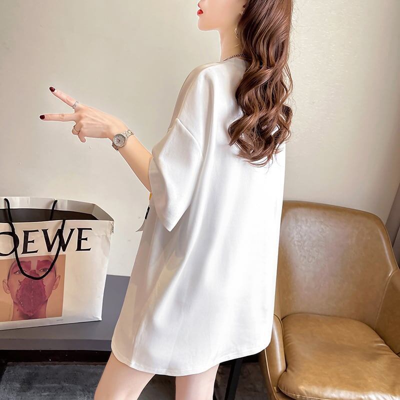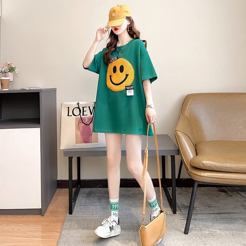 質感のいい ニコちゃん刺繍 スマイル ロング Tシャツ ゆったり半袖 GF2461