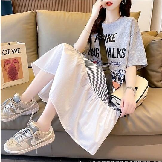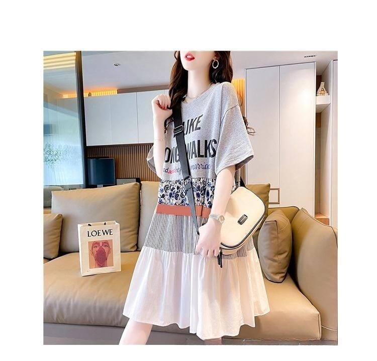 大好評 アルファベット 切り替え プリントワンピース ゆったり半袖GF2469