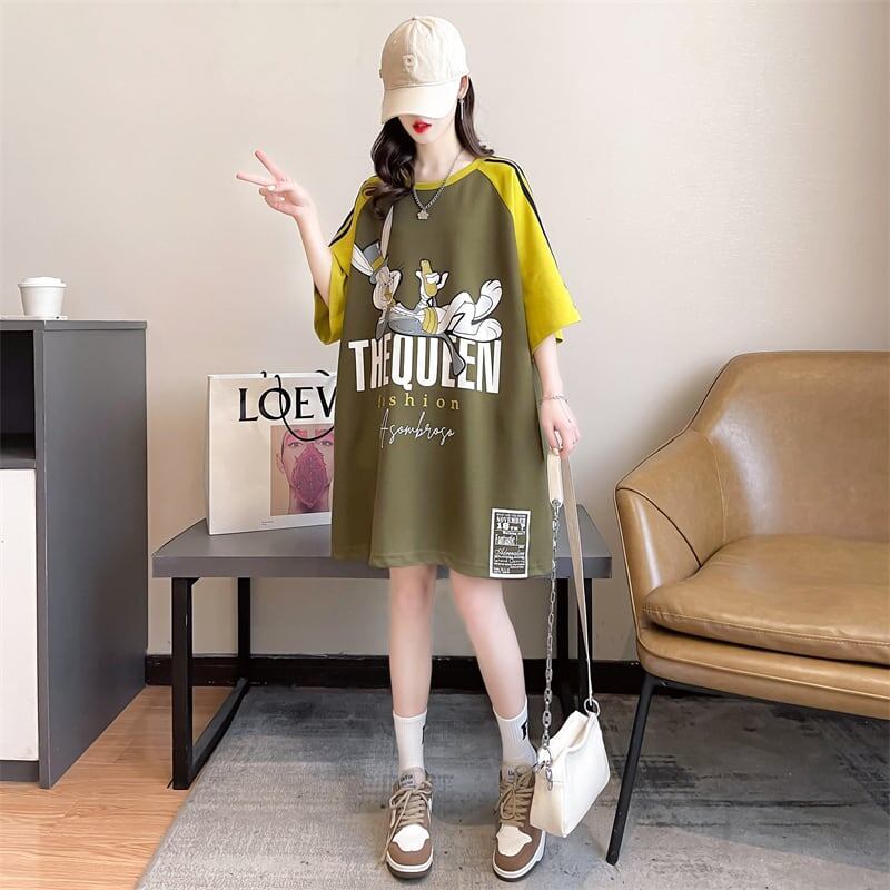 キュート ウサギ カラーブロック半袖TシャツGF2481