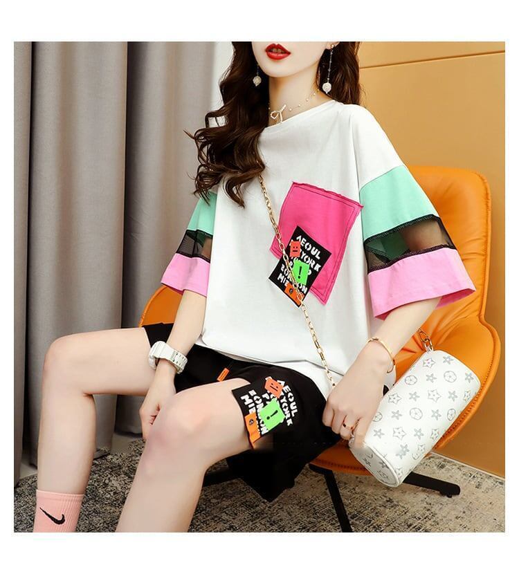 気質 半袖 カラーブロックフライドストリート ショートパンツ スーツGF2489