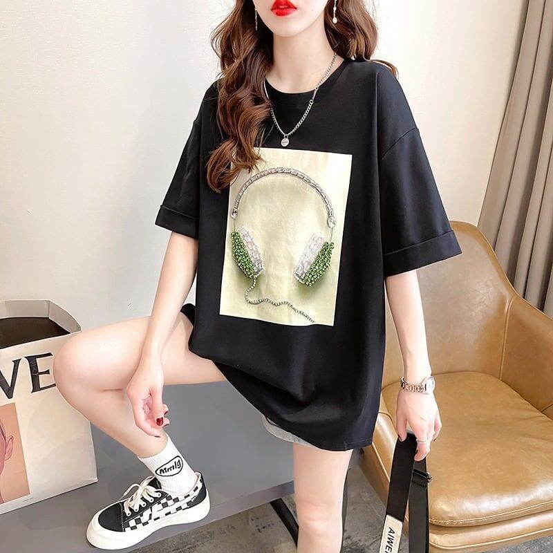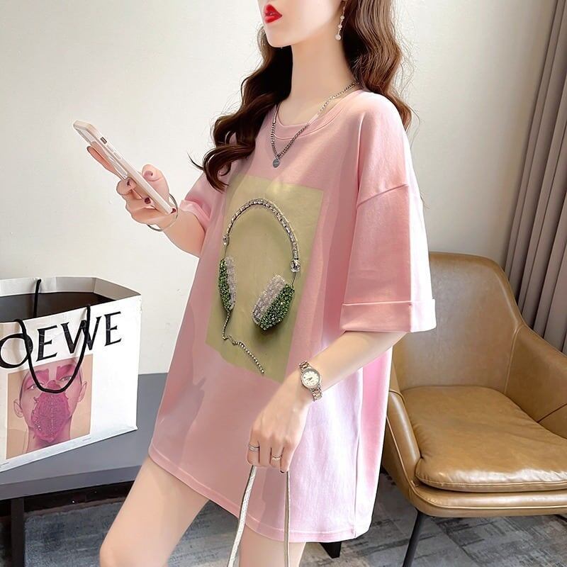 着心地良い Tシャツ ビジュー 四色 ゆったり半袖GF2502