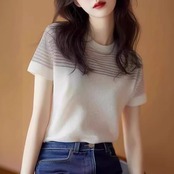 好感度UP シンプル プリント プルオーバー ラウンドネック 半袖 Tシャツ 大人カジュアル fashion ootd 夏コーデ ファッション coordinateコーディネート 夏服 カジュアルコーデ 今日のコーデ 大人コーデ レディースGF6391