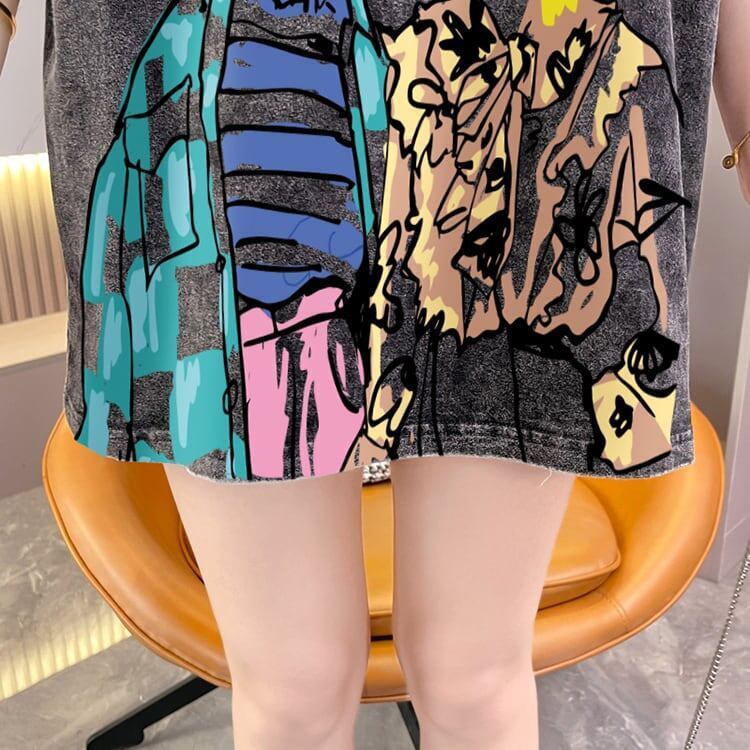 おすすめ ストリート系 ヴィンテージ加工 プリントTシャツ ゆったり半袖GF2527