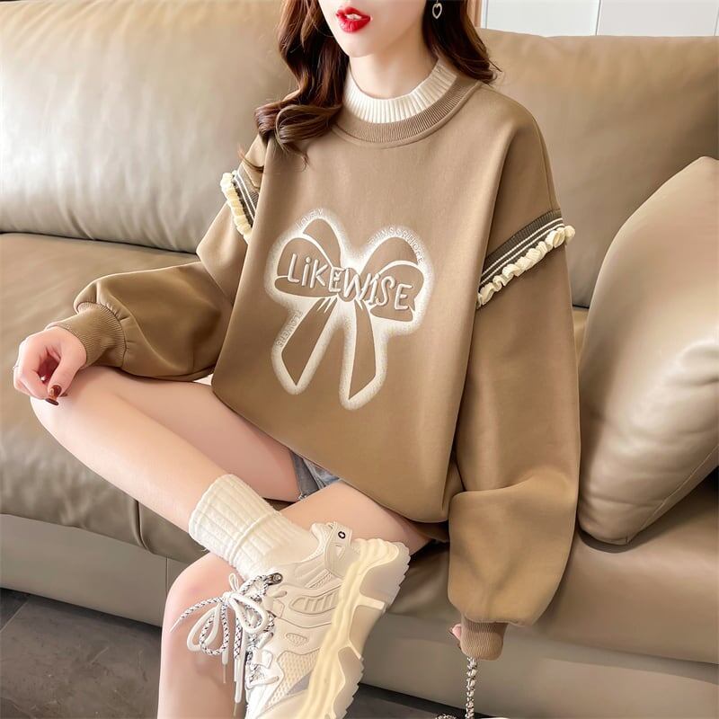 新しい 刺繍 薄い緩い ステッチフェイク ツーピースプル オーバーセーターGF2532