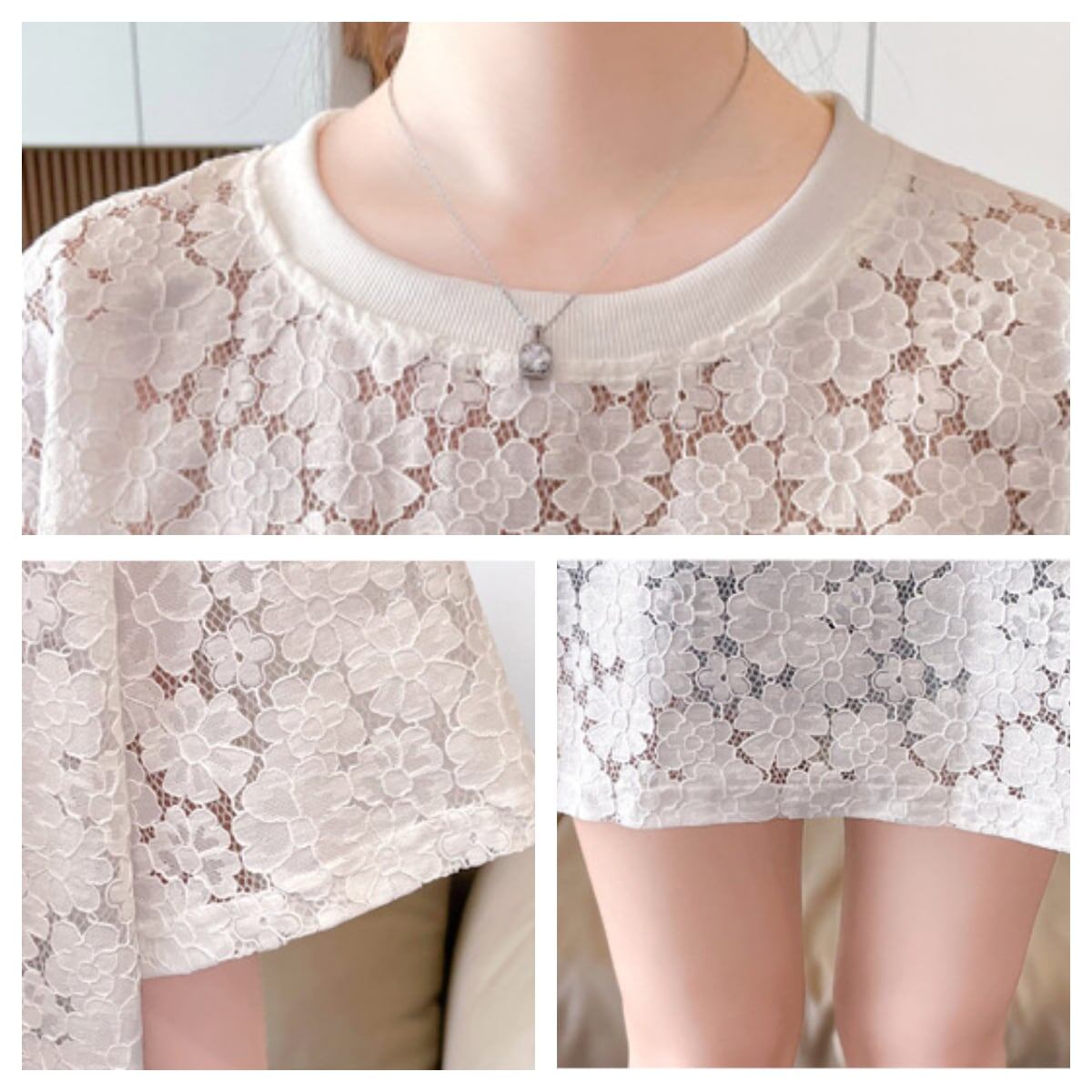 ハイエンド レース 中空 デザインセンス ルーズ ミドル丈 半袖TシャツGF2535