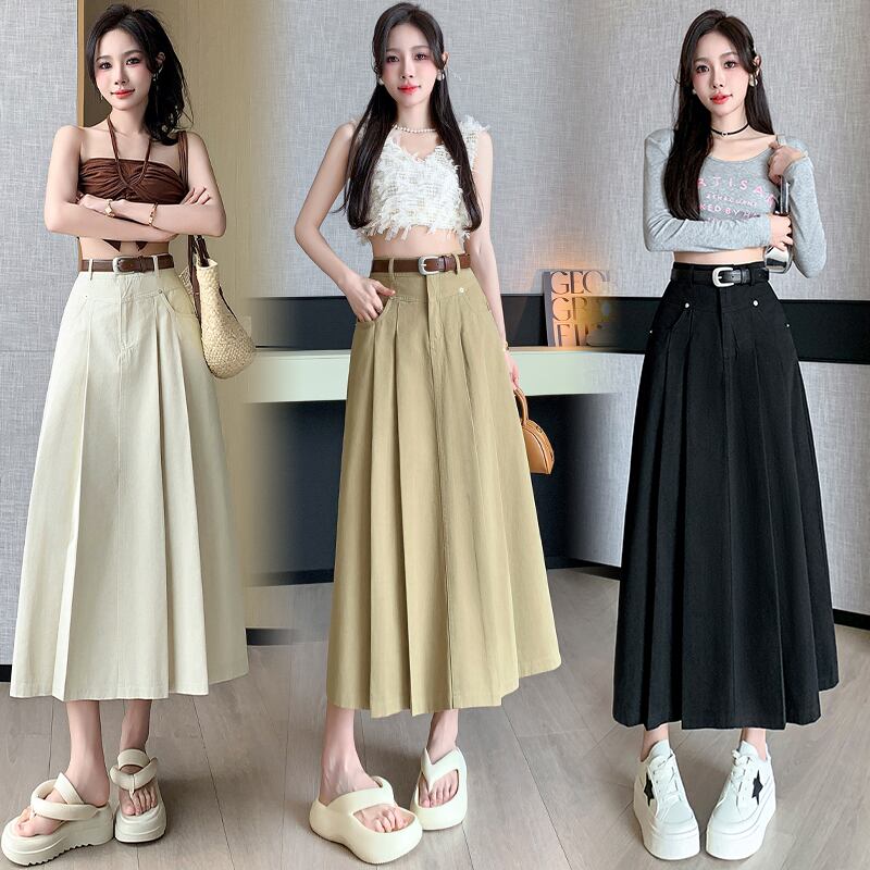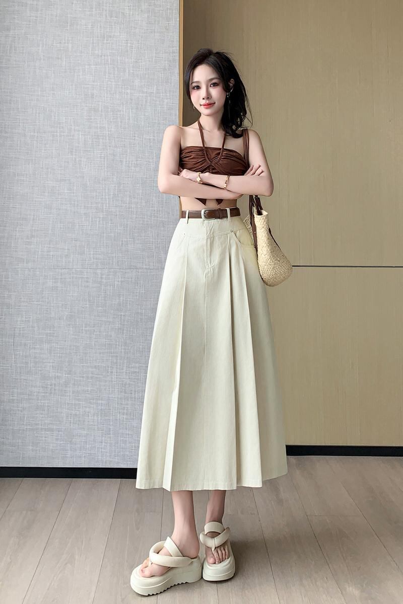 3カラー展開 ファッション カジュアル 着痩せ効果 ハイウエスト デニム プリーツ スカート 大人カジュアル fashion ootd 夏コーデ ファッション coordinateコーディネート 夏服 カジュアルコーデ 今日のコーデ 大人コーデ レディースGF6424