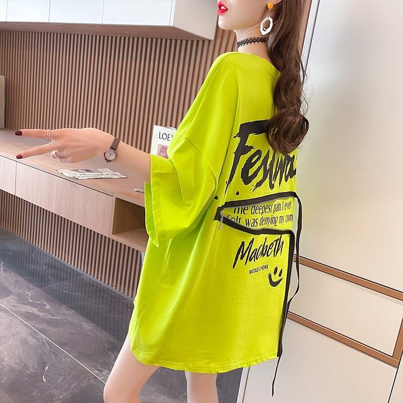 デザイン個性ゆったりミドル丈半袖TシャツGF2550