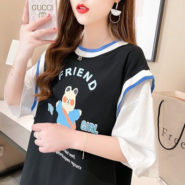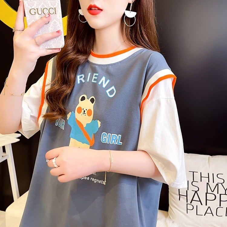 デザインセンス漫画フェイクツーピース半袖TシャツGF2551