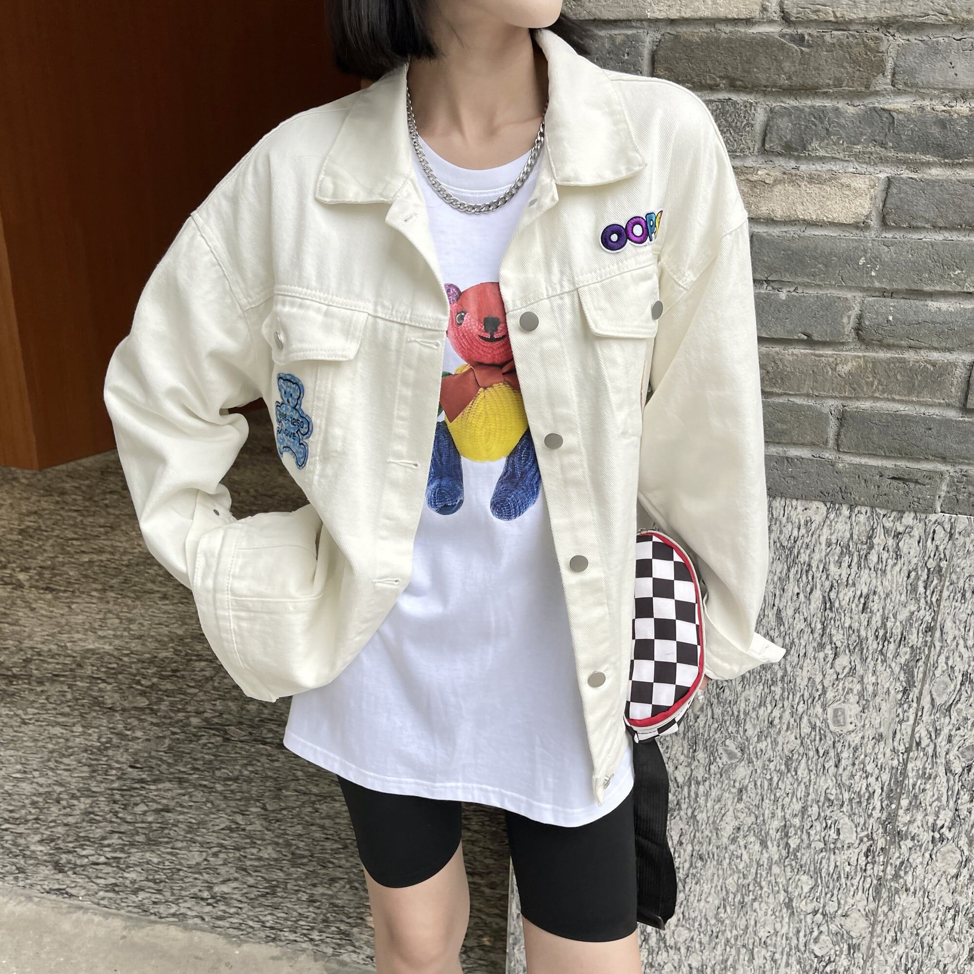 バックステッカー付き カジュアル オールマッチベア デニムジャケットGF2585
