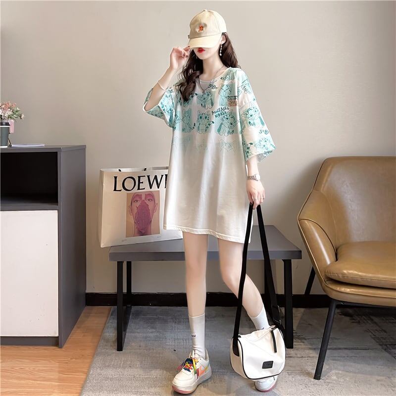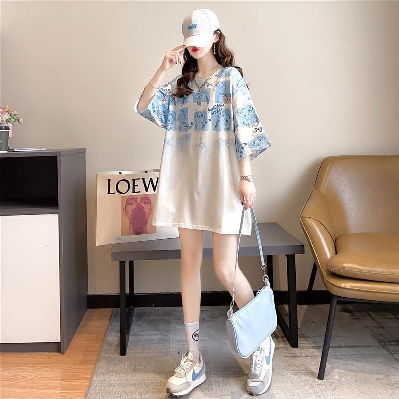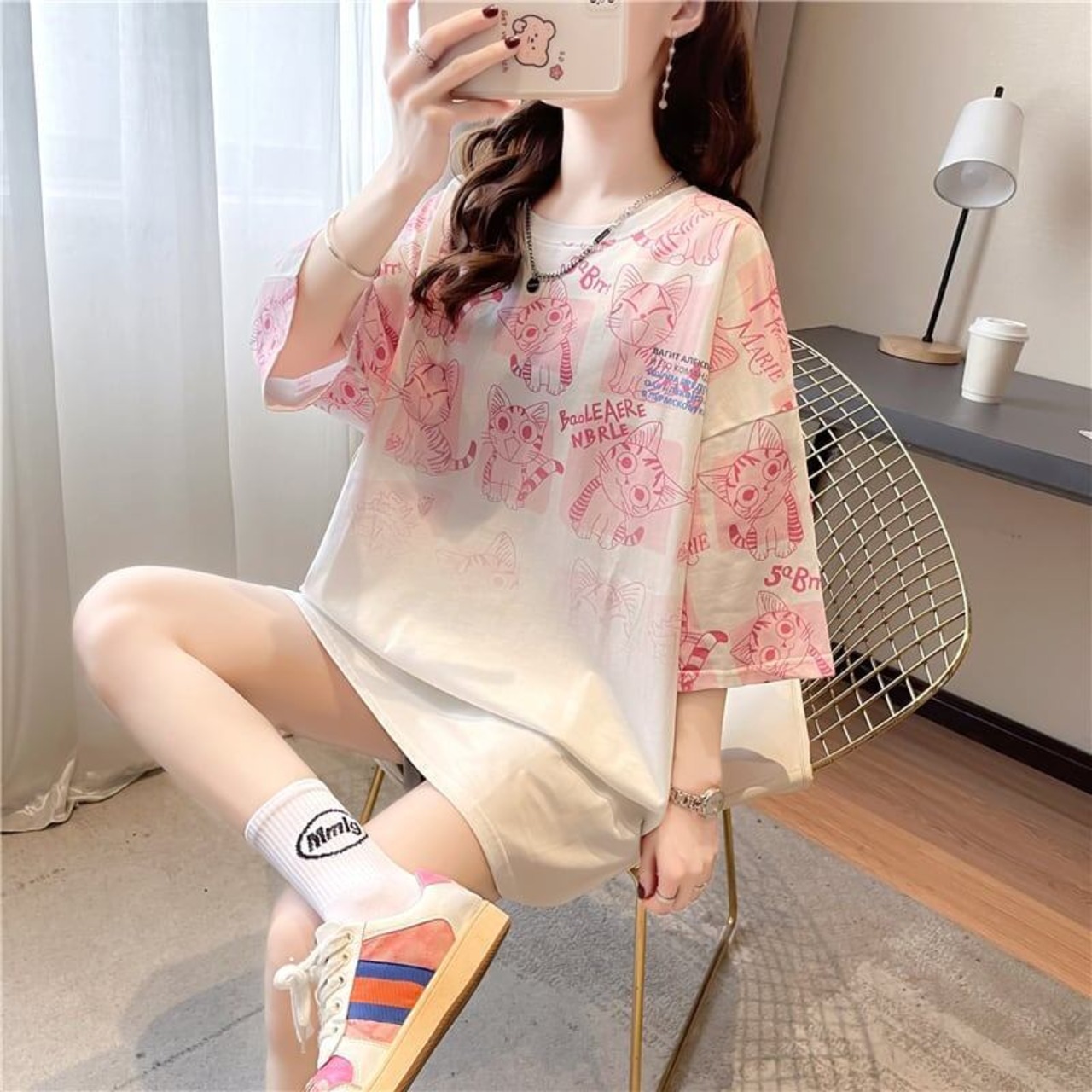 「半額!期間限定!!」大好評 プリント ロング 猫柄 Tシャツ 四色 ゆったりワンピースGF2591