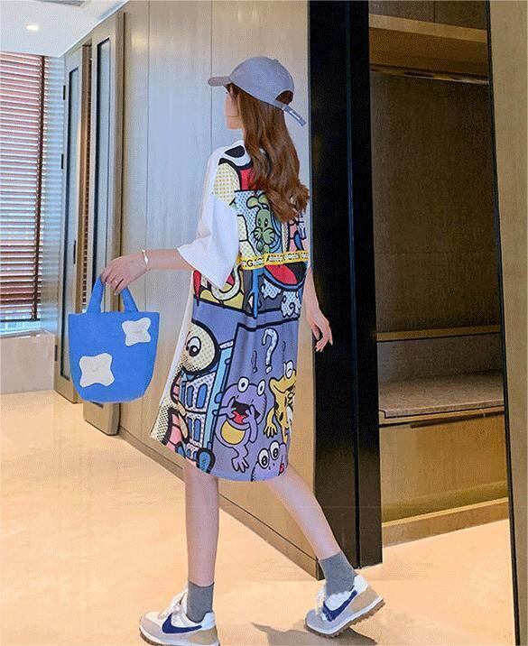 大人気ロング丈 ワンピース Tシャツ 2色 GF2606