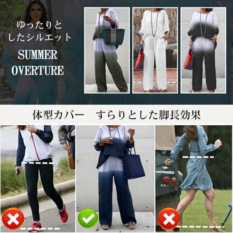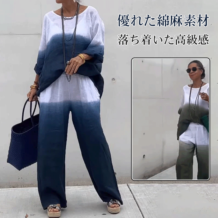 高見えデザイン カジュアル 七分袖 ラウンドネック Tシャツ カジュアルパンツ グラデーション色 2点セット 大人カジュアル fashion ootd 夏コーデ ファッション coordinateコーディネート 夏服 カジュアルコーデ 今日のコーデ 大人コーデ レディースGF6513
