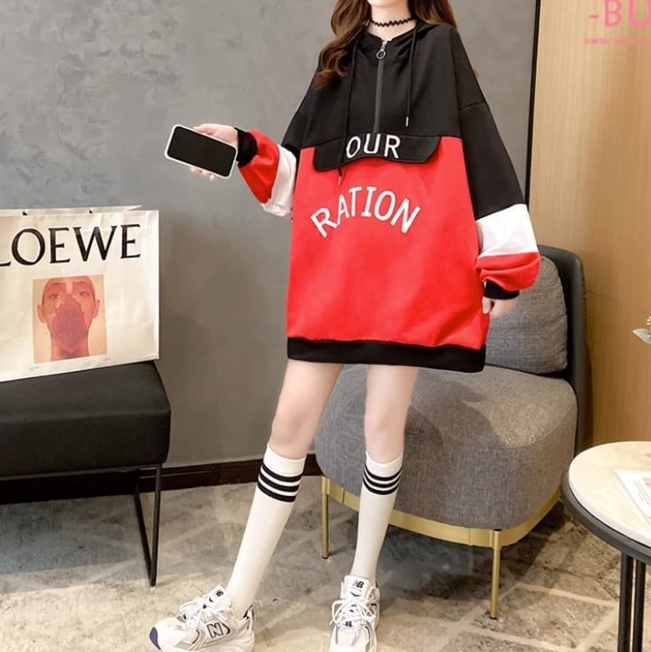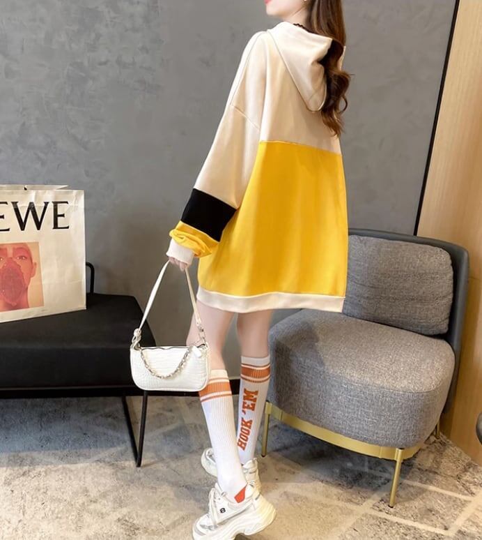 「半額!期間限定!!」韓国スタイル ルーズ ミドル丈 スプライシングジッパーフード付きセーターGF2610