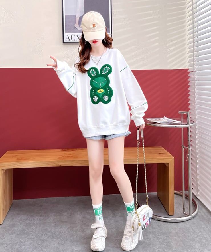 「秋の初めの割引!!」韓国風ルーズ漫画刺繍ホットダイヤモンドミドル丈トップスGF2616