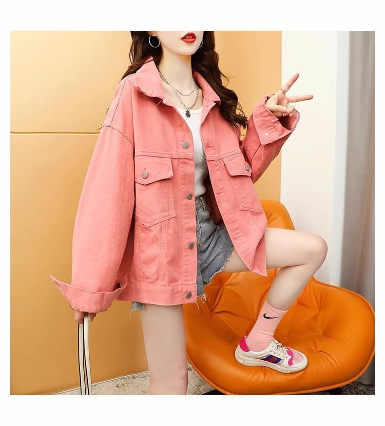 美人度アップ 韓国系 カラーデニムジャケット ピンクGF2644
