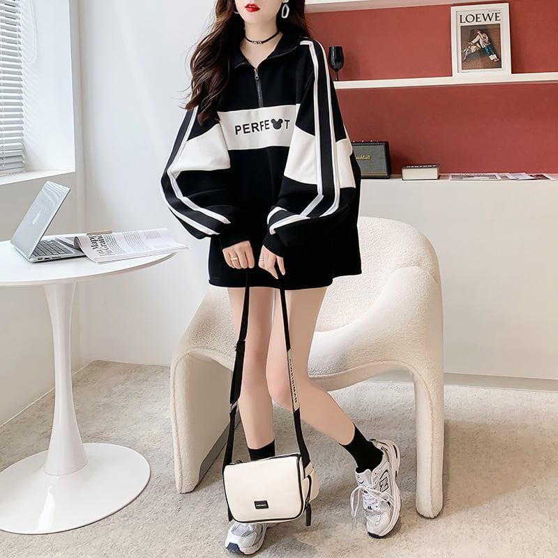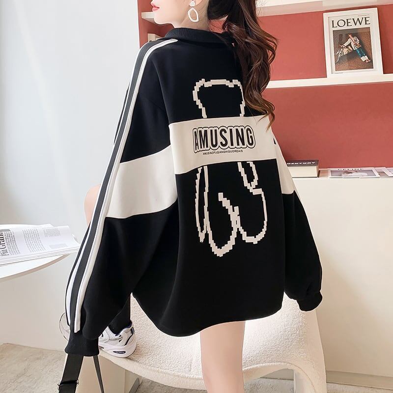 可愛いクマちゃん ロゴプリント配色切り替え 四色長袖トップスGF2652