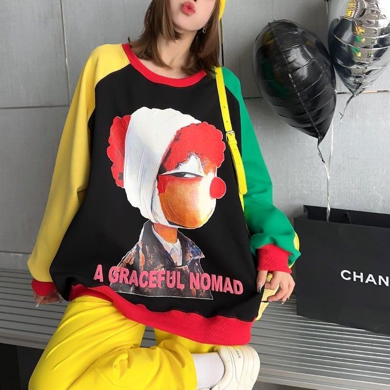 「半額!期間限定!!」デザイン性抜群 カラーマッチング グラフィックプリント オーバーサイズスウェットGF2735