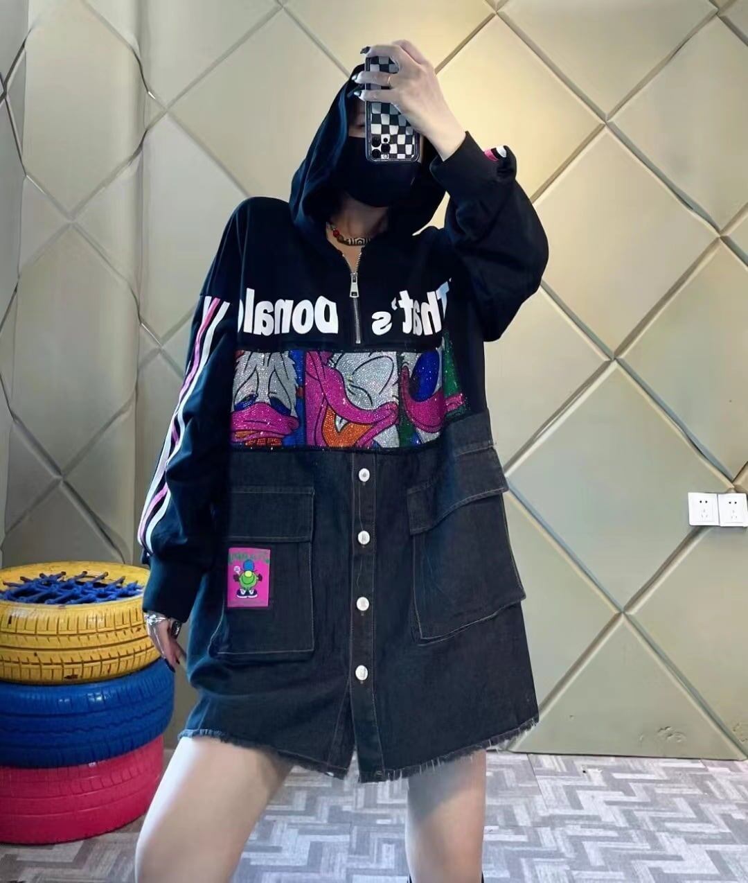 話題沸騰中 デニム 秋の新漫画ホットダイヤモンドステッチ フード付き セーターGF2753