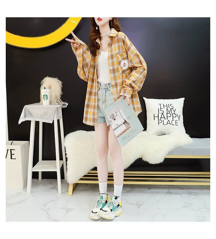 「秋の初めの割引!!!」組み合わせやすい チェック柄 花柄プリント シャツ 三色GF2790