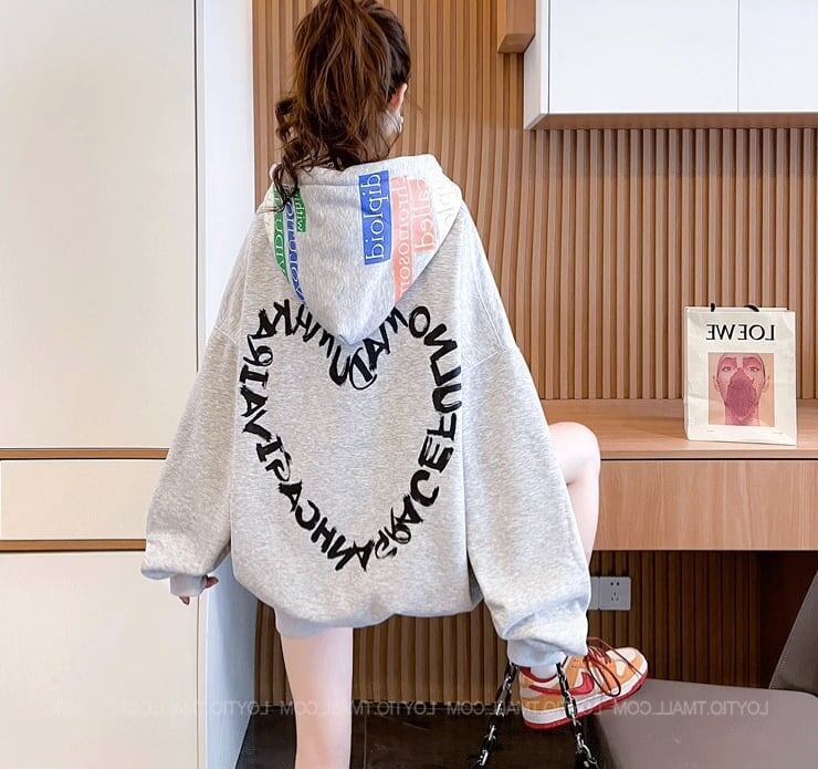 韓国系ハートマークプリントフード付きパーカー三色ありGF2838