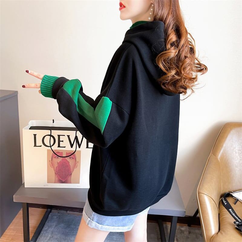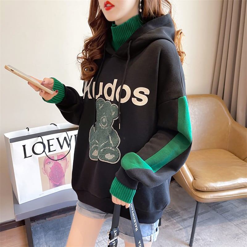スタイルアップ配色ベア切り替え裏起毛フード付きパーカー二色ありGF2841