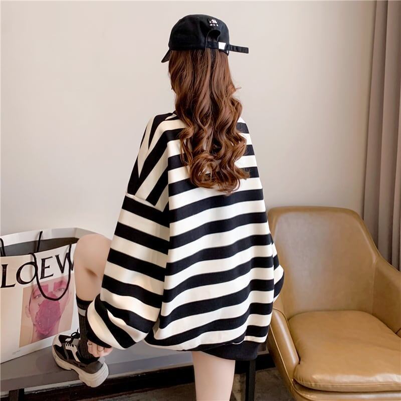 韓国系ストライプ柄 ぬいぐるみオーバーサイズ スウェットGF2873