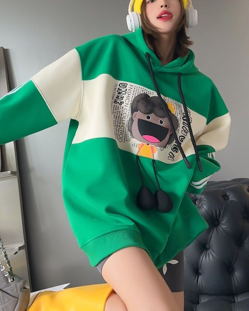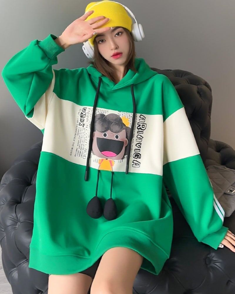 見逃し禁止 配色プリントオーバーサイズパーカー三色ありトップスGF2920