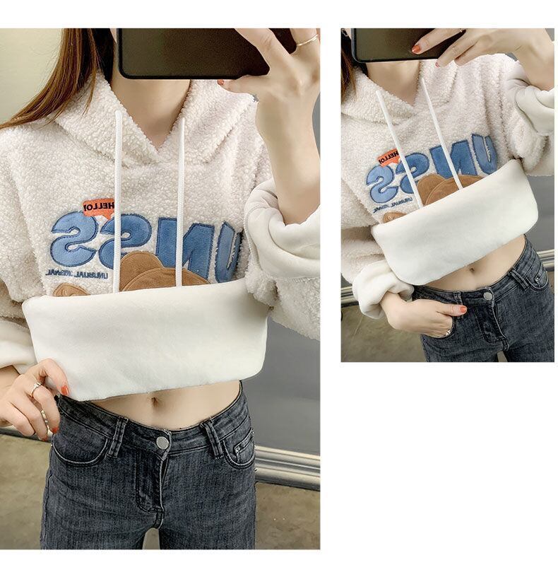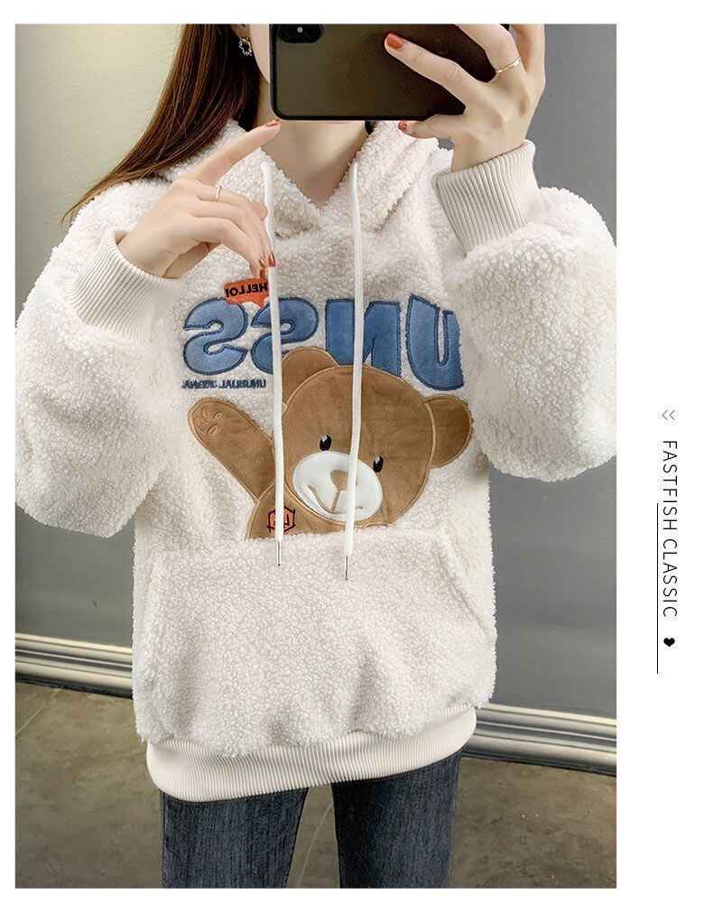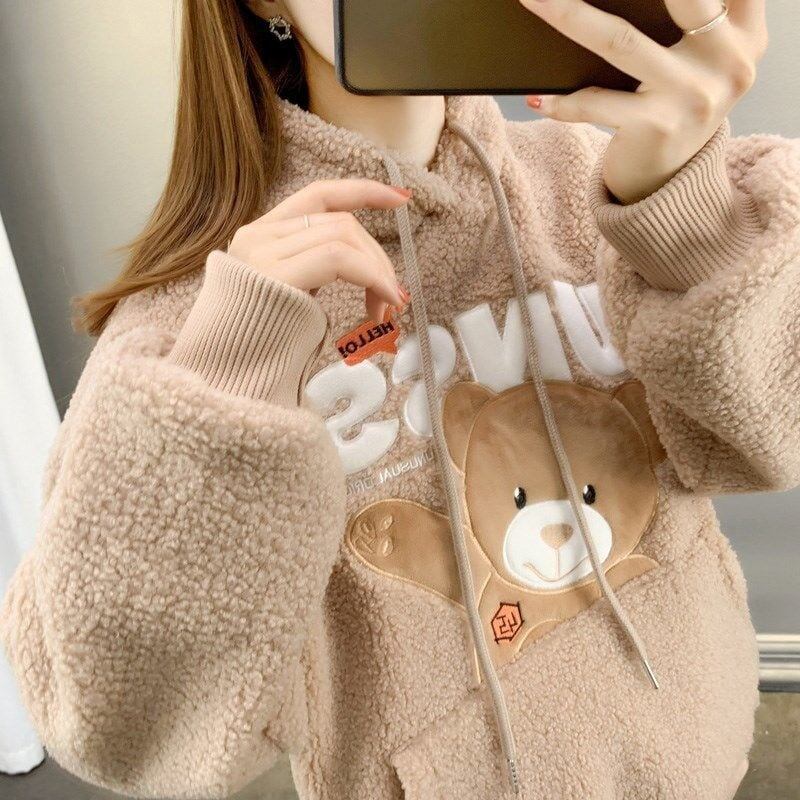 大人可愛い熊柄ロゴボアパーカーふわふわトップス全3色GF3037