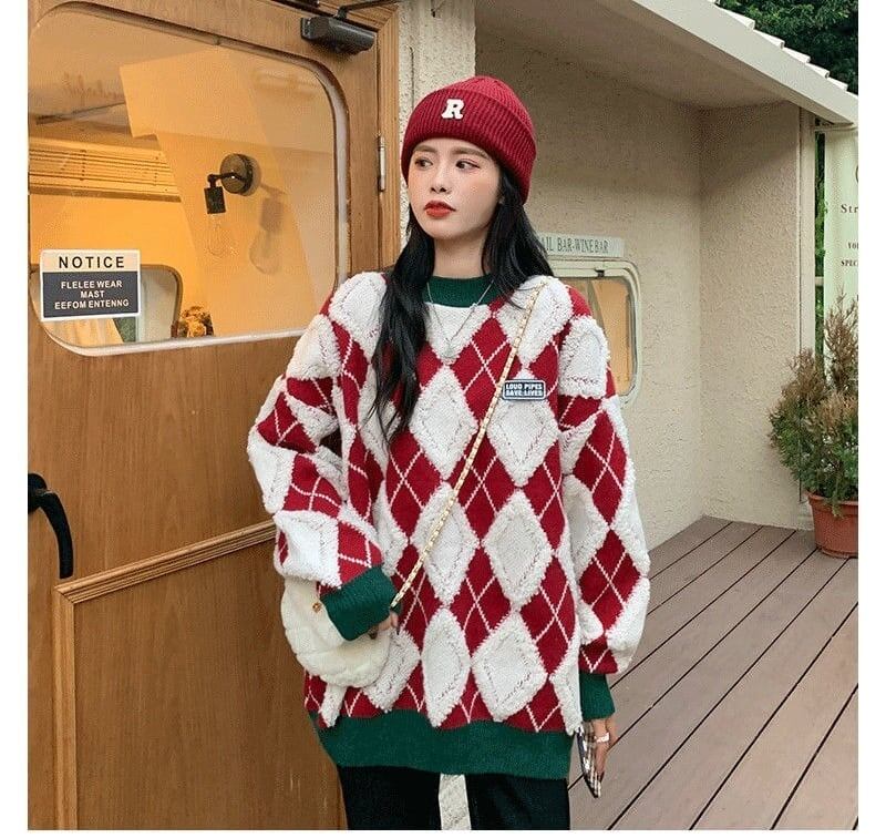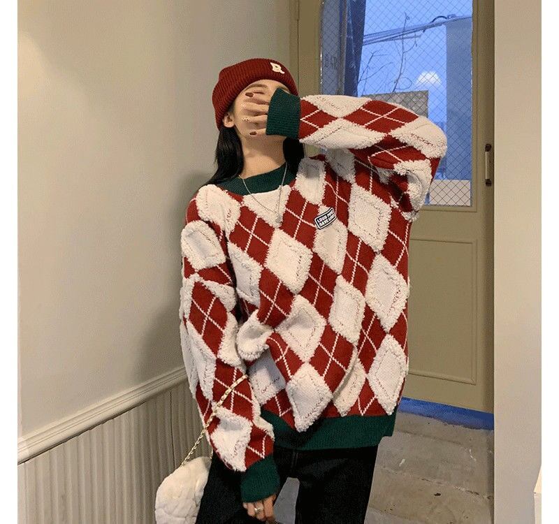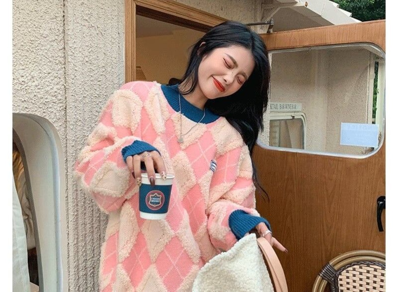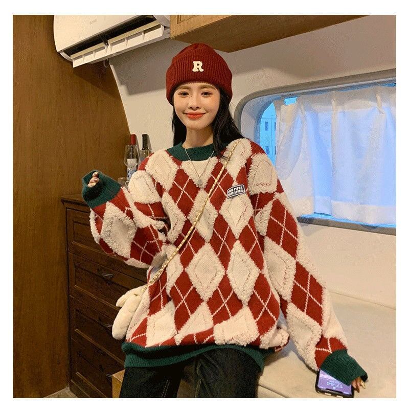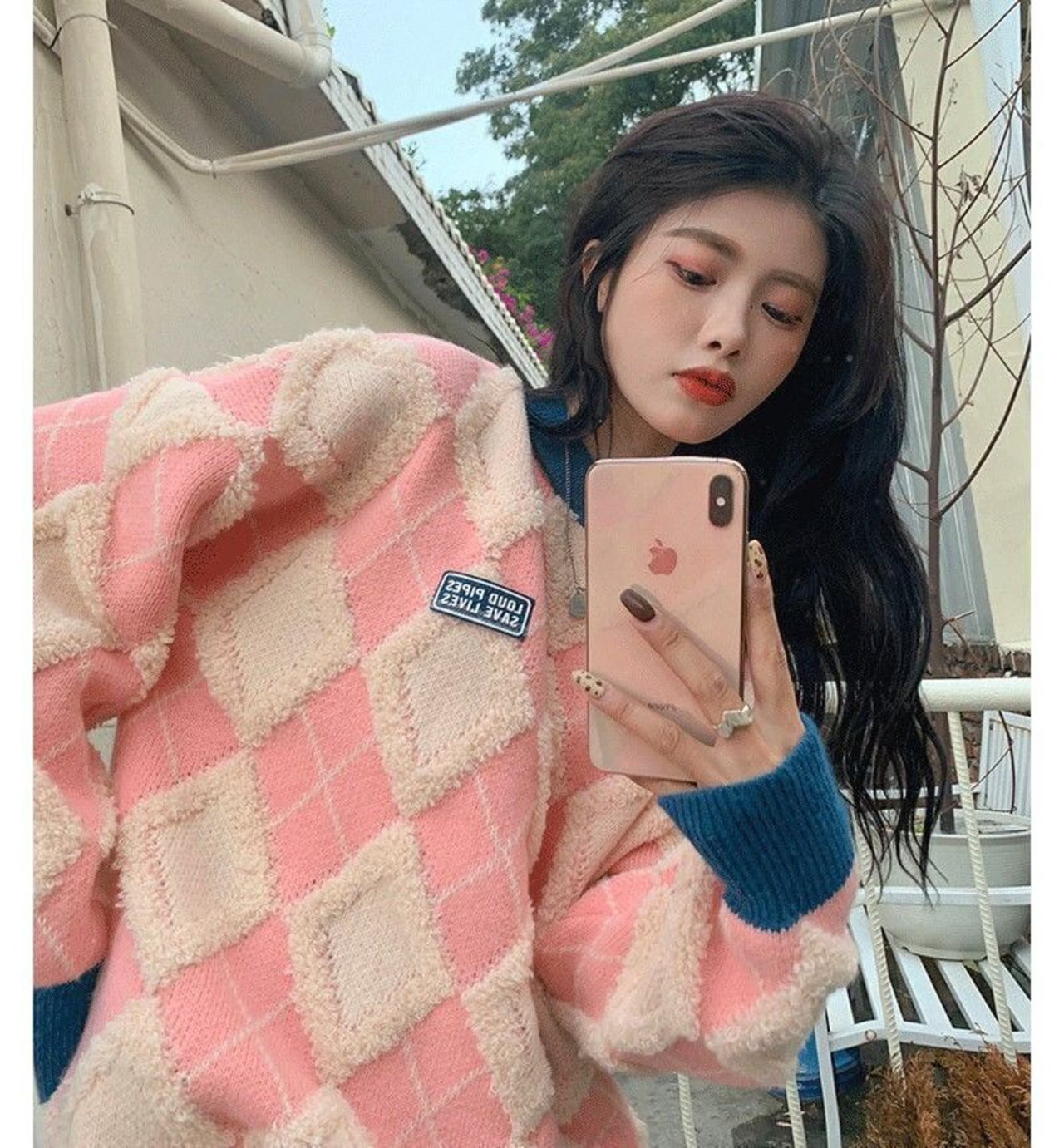 定番シンプルチェック柄ニットセータートップス全3色GF3075