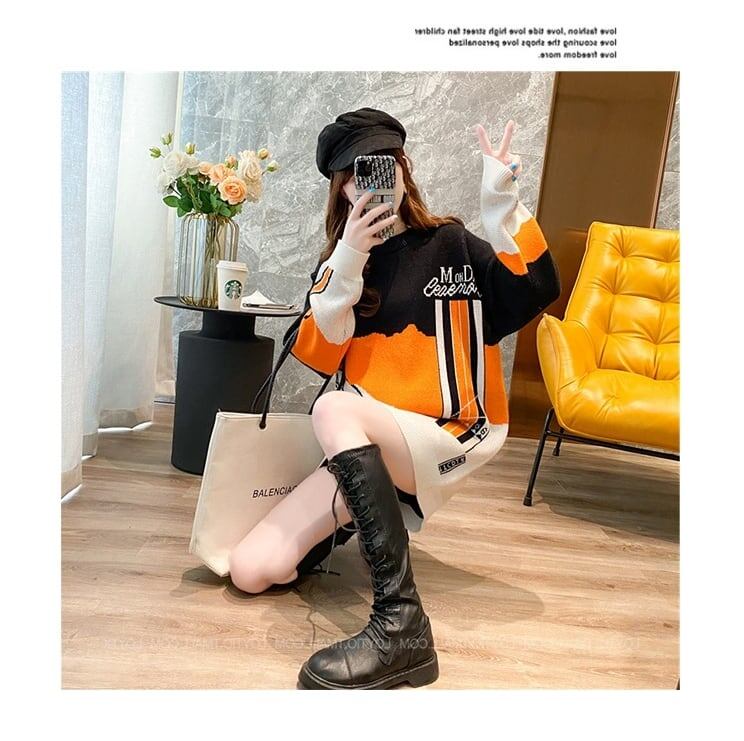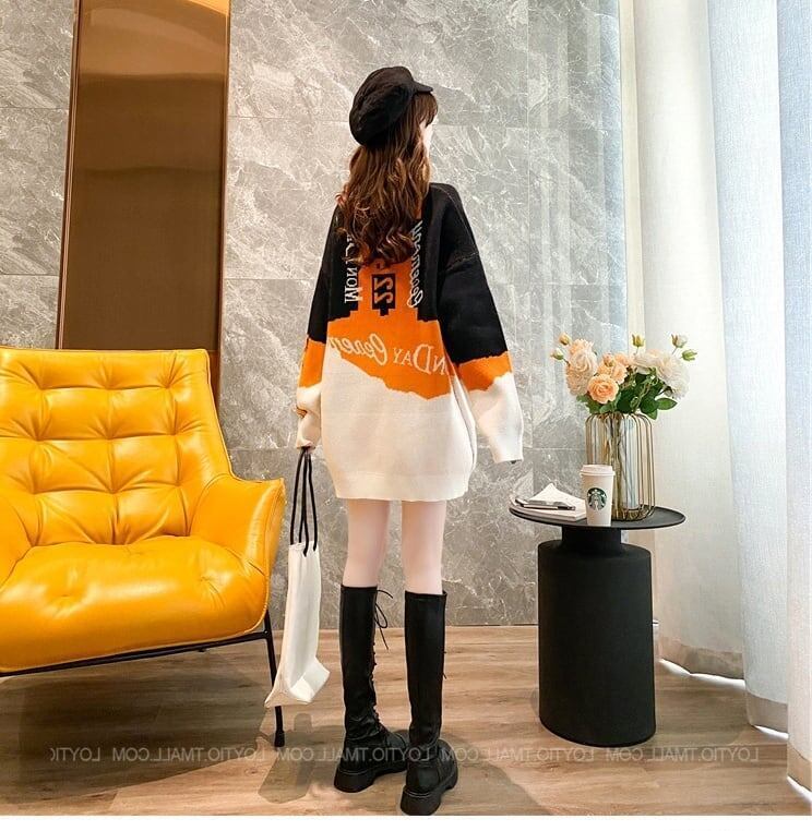 おしゃれ配色ビックロゴニットセータートップス全2色GF3091