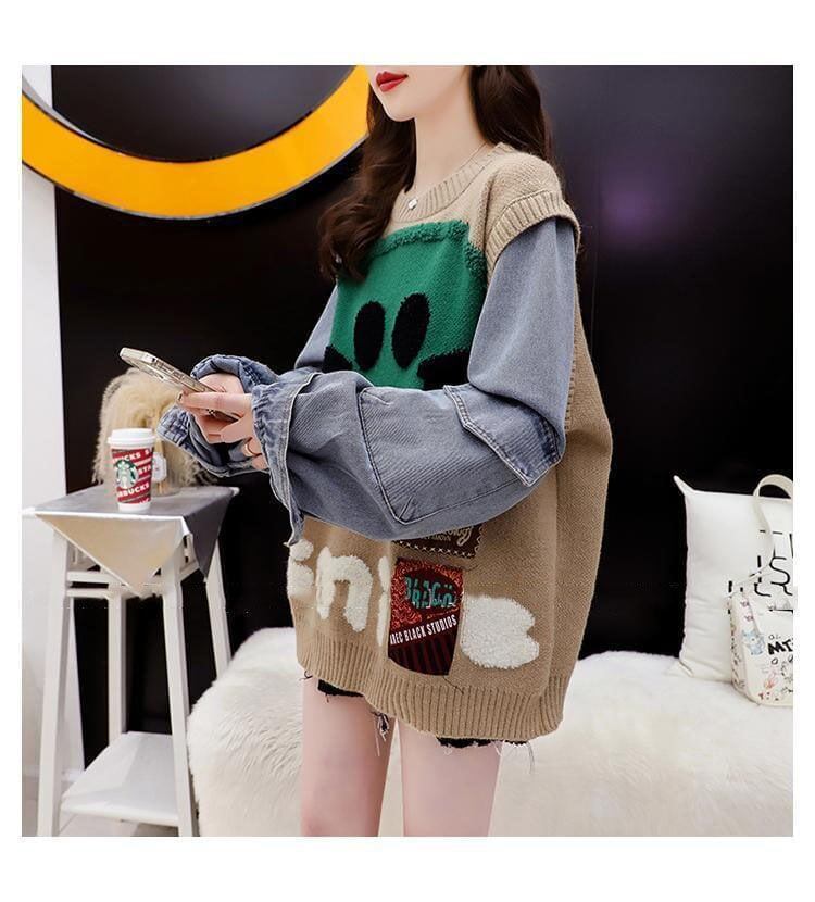 超人気レイヤード風ニットセータートップス三色ありGF3122