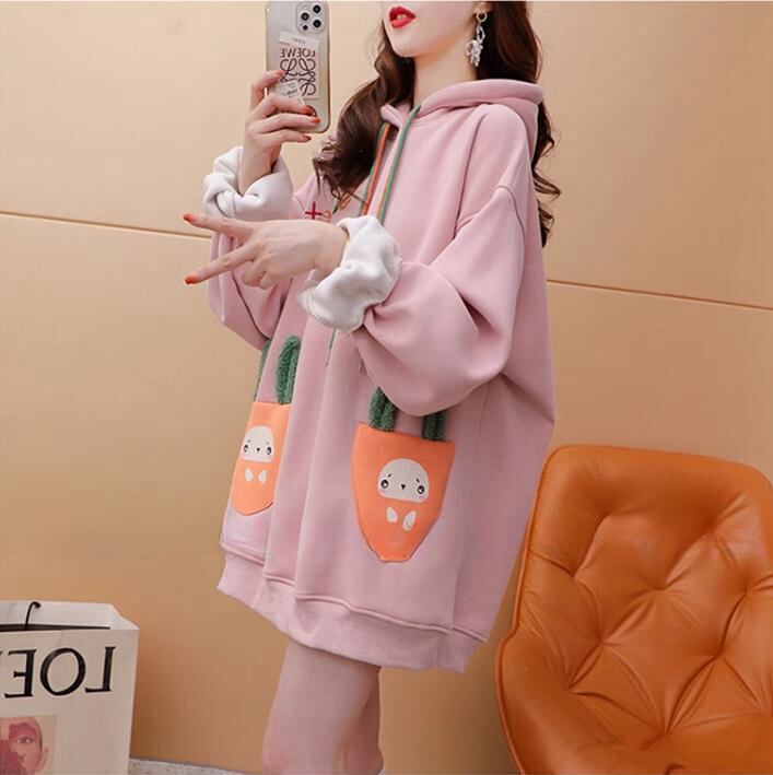 可愛いにんじんポケットデザインロゴパーカー全2色 裏起毛トップス GF3346