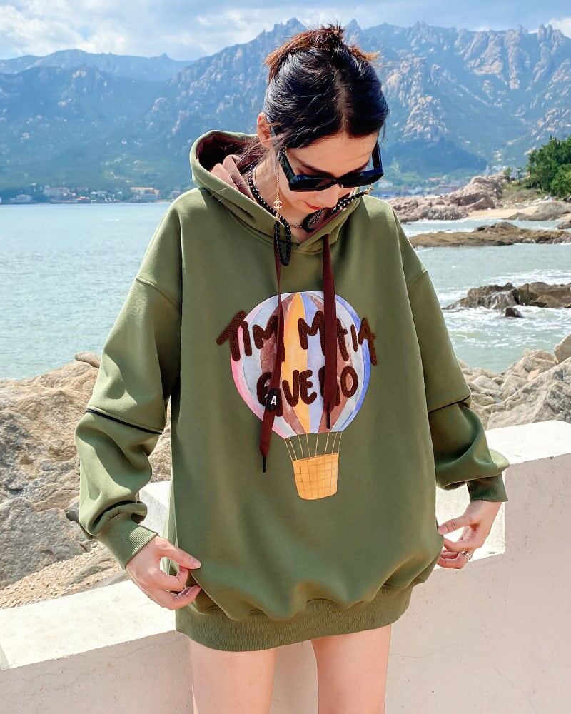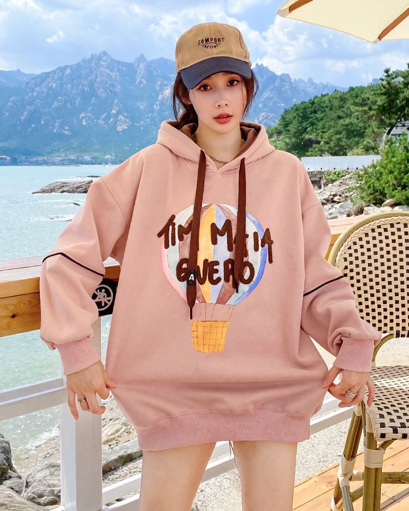 美人度アップ刺繍ロゴフード付きパーカ裏起毛 全5色トップス GF3393