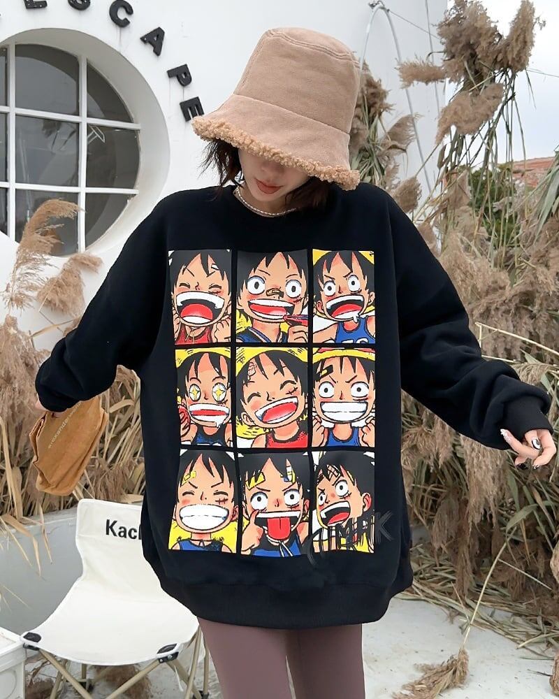 おすすめグラフィックプリント裏起毛スウェット全2色オーバーサイズGF3408
