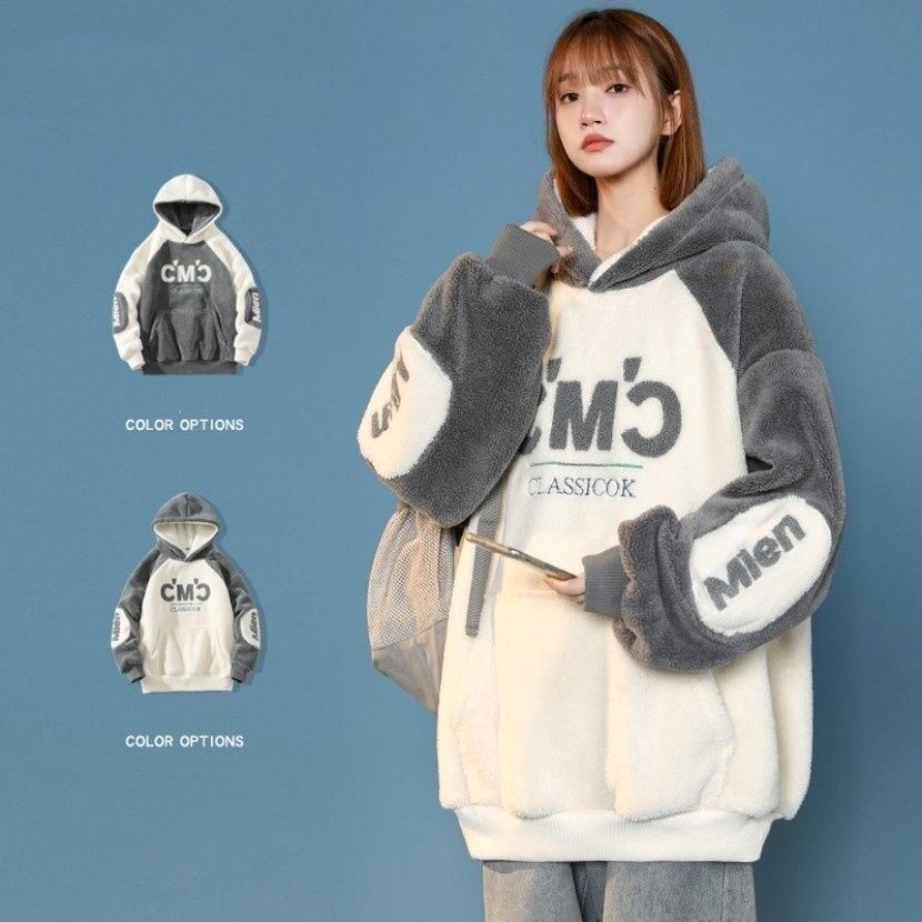 女子マストもこもこ配色厚手ボアパーカー全2色GF3433